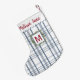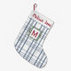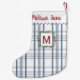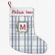 Petite Chaussette De Noël Monogramme de couronne de verdure à carreaux bleus