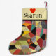 La conception colorée d'édredon fol sur ce bas de Noël a un patchwork de tissu décoré avec différents couleurs et motifs comprenant le pois, remous, rayures, texture de toile de jute, et plus. Les couleurs incluent le rose, le brun, la turquoise, le jaune, le gris, le noir, l'orange, le vert olive et le rouge. La bande supérieure est crème avec un coeur rouge et un nom décoré d'un monogramme pour que vous personnalisiez des deux côtés du bas. Fait un grand cadeau ! Conçu par le © Tim Coffey d'artiste.