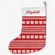 Le bas de Noël avec le motif nordique blanc et rouge de chandail de Noël est parfait pour Noël de fête. Vous pouvez personnaliser avec votre propre texte spécial. Articles assortis disponibles dans notre magasin. www.zazzle.com/giftsforanyoccasions