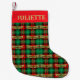 Ce bas festif de Noël met en scène un arrière - plan en plaid avec des feuilles sur le dessus dans les couleurs traditionnelles de Noël et un nom. Le nom sur le stockage peut être customisé avec le nom du destinataire.