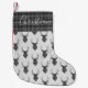 Tartan Gris Tête de Chien de Noël, Stocking de Ricaso - un design de vacances sophistiqué avec une tête de cerf et des bois sur un arrière - plan gris clair terminé avec un motif gris foncé - ajoutez votre propre nom ou un autre texte à cet élégant stockage