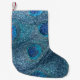 Petite Chaussette De Noël parties scintillant bleue brumeuse plumes paon
