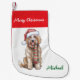 Petite Chaussette De Noël Personalized Goldendoodle Dog in Santa Hat