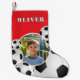 Score a festive goal this holiday season with our Personalized Soccer Ball Football Boy Photo Christmas Stocking! This vibrant green stocking features classic black and white soccer balls, creating an exciting backdrop for your favorite boy's picture. Easily customize it with his name, and add a photo to create a truly unique and memorable holiday keepsake. Perfect for young athletes, and sports fans, this custom stocking is an ideal gift to make Christmas morning extra special.