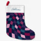 Personnalisé Bold À damiers Motif Noël Stocking. Couleurs bleu, turquoise, violet et rose. Personnalisez le modèle avec votre nom. Toutes les couleurs sont modifiables ! (Assurez-vous de modifier également l'autre côté.) © Kimbellished, LLC