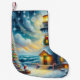 Petite Chaussette De Noël Phare de Noël Arbre Nautique Bleu Côtier
