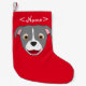 Petite Chaussette De Noël Pitbull gris font face avec la flamme blanche
