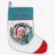 Le premier Noël de votre bébé est un moment magique et il vaut la peine de le rendre parfait. Ce stock de Noël est une façon parfaite de décorer votre maison pour les vacances, de fournir des cadeaux pour votre bébé et aussi de garder comme souvenir pour les années à venir pour se souvenir de ce merveilleux moment. Le bas est imprimé avec une couronne de Noël peinte à la main, la photo de votre bébé et un texte de script pour customiser.