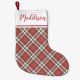 Petite Chaussette De Noël Red Christmas plaid pattern personalized name