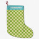 Petite Chaussette De Noël Retro Green Blue Checkerboard Personalized Name