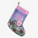 Petite Chaussette De Noël Roseaux à carreaux roses bleus personnalisés Cônes