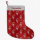 Petite Chaussette De Noël Silver Candy Canes Red Glitter Personalized