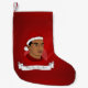 Stockage de Noël avec illustration d'un Africain Américain ou Hispanique avec cheveux noirs courts et casquette du Père Noël rouge ; en cercle rouge sur arrière - plan rouge, avec modèle texte personnalisable pour votre nom ou message