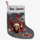 🎄This unique Christmas stocking has faux white fur across the top, your personalized family member's name in a snow-capped font, and images sweets with red bows, and a red heart containing your special uploaded photo.