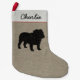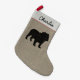 Chacun veut être inclus dans les festivités saisonnières et nos amis de bouledogue ne sont aucune exception. Traitez votre membre de la famille quatre à jambes avec un bas personnalisé de Noël. Un bas mignon pour des chiens et des amoureux de les chiens. Silhouette anglaise de bouledogue sur le tissu de toile de style de faux avec le texte personnalisé. Le monde du griffonnage de Jenn de visite pour des bas de Noël de bien plus d'amant d'animal familier et le chien multiplient des décorations de vacances.