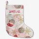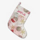Celebrate the holidays with a sporty flair using this unique personalized Christmas stocking. Featuring a charming watercolor design with festive pink and red hues, sparkling golden snowflakes, and stylish volleyballs with Santa hats. Personalize with name, making it an ideal gift for volleyball players, coaches, or fans. Hang it by the fireplace with care, ready for Santa to fill with treats, and add a special touch of their favorite sport to your holiday decor.