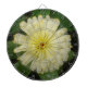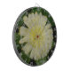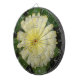 Ce somptueux tableau présente une photo détaillée d'un marigold jaune pâle. La photographie a été prise en macro et montre un contraste saisissant entre cette fleur pâle et ses feuilles vert foncé.