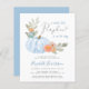 Un mignon petit garçon à petit budget saupoudrer l'invitation avec "un petit citrouille doux est en route" écrit en typographie bleue et un script gris mou avec un essaim de coeur, et un bouquet d'aquarelle d'un citrouille bleu pastel, fleurs orange et verdure. Personnalisez facilement le nom de la mère dans un script bleu moderne et les détails spinkle dans une simple typographie gris-doux.