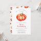 Aquarelle Petite citrouille première invitation de fête d'anniversaire. Éléments correspondants disponibles.