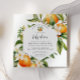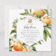 "A Little Cutie is on the Way" invitation baby shower qui comprend des graphismes orange vif et une police moderne. Le design agrumes est parfait pour un baby shower neutre pour les femmes.
