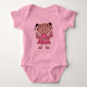Une adorable petite fille aux pigtails et une robe rose tient une série de lettres qui épellent "TROIS" sur les T-shirts, cartes, autocollants, sacs, et bien plus !