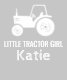 Simple design de tracteur blanc out avec les mots petite fille tracteur et votre propre choix de nom, actuellement lit Katie. Une excellente idée cadeau pour les petites filles qui aiment aider à la ferme. Illustration et design uniques de Sarah Trett. www.sarahtrett.com pour www.mylittleeden.com