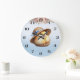 Belle petite horloge murale Poulet avec ruban bleu