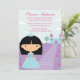 Ce invitation d'anniversaire de 5x7 pour filles a un thème de princesse mignonne. Il y a une coiffeuse noire devant un château. En haut, vous pouvez facilement customiser les informations sur la fête. design par STOCKBERRY STUDIO