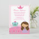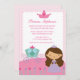 Ce invitation d'anniversaire de 5x7 pour filles a un thème de princesse mignonne. Il y a une coiffeuse brune devant un château. En haut, vous pouvez facilement customiser les informations sur la fête. design par STOCKBERRY STUDIO