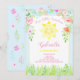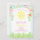 Cette douce invitation d'anniversaire fête ensoleillée présente un joli soleil aquarelle, des fleurs et de l'herbe, un fond de ciel bleu et un texte rose doux. Parfait pour une fête ensoleillée à tout moment de l'année et le début d'une merveilleuse fête ensoleillée ! Un joli motif floral au verso est inclus.