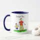 Père et fils tiennent la main. La chemise de l'homme lisait "papa" et la chemise du petit garçon disait "moi". Les parents et les enfants ont tous deux les cheveux brunes. Le titre dit "Daddy's Boy" mais vous pouvez le changer pour ajouter des noms personnalisés ! Cette image de famille parent et enfant est aussi en couleur comme blond ou en aucune couleur comme dessin. Faites une tasse cadeau de Fête des pères personnalisée avec votre propre texte et images en utilisant le bouton "Customiser"!