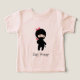 La mignonne fille de dessin animé ninja est habillée tout en noir mais pour un arc rose sur son masque de tête. Le katana d’épée japonaise traditionnel peut être vu attaché sur son épaule, sa poignée est également rose.