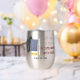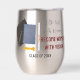 Ce caisson à vin thermique en acier inoxydable fait un cadeau parfait pour la graduation. Le design est pour toutes les petites filles, qui rêvent grand. Le texte dit : "Petites filles avec des rêves deviennent des femmes avec une vision". Vous pouvez customiser ce design en ajoutant l'année de graduation.