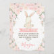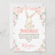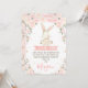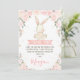 Pink Floral Bunny Girls Birthday Carte de remerciements mignonne lapin d'anniversaire avec un lapin ou lapin blanc, quelques arrangements floraux roses, bannière rose et texture grognante en faux or. Ce design est une façon douce de remercier les invités pour la fête d'anniversaire à thème lapin de votre petite fille.