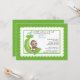 Commencez votre baby shower de garçon outre de la droite avec notre singe doux adorable de petit garçon dans une invitation de baby shower de cosse de pois. L'invitation comporte un singe mignon utilisant une couche-culotte avec une tétine bleue dans un ensemble de cosse de pois sur un ensemble blanc d'arrière - plan de feston sur un arrière - plan pointillé par polka verte. L'invitation comporte un dos coordonné. Visitez notre magasin pour regarder notre autre bébé de singe dans une invitation de cosse de pois et de l'assortiment merci des cartes de note, des autocollants et des timbres-poste.