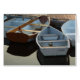 Un petit bateau à rames nommé Jazz est attaché au quai à la fin d'une journée d'été.