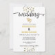 Faux feuille d'or et confetti noir point d'invitation de mariage glamour et élégant.