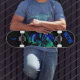Peur Badass Neon Blue Skull Monogramme Skateboard