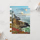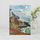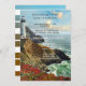 Un billet festif ou une invitation à la fête de mariage avec une peinture d'une côte avec un phare aux couleurs vives. Idéal pour une réception uniquement ou une fête après le mariage.