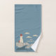 Ajoutez une touche balnéaire à votre décor de salle de bain avec cette serviette de bain ou cette serviette d'hôtel prête à être personnalisée avec un nom. Il a une simple illustration nautique d'un phare en rouge, crème ou ivoire. Le phare se dresse sur une côte rocheuse avec des vagues qui s'écrasent en contrebas et des nuages crème dans le ciel. Le graphique est positionné contre un arrière - plan bleu français doux.