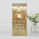 Programme de mariage avec lumières à cordes mâchoire suspendu sur la branche de l'arbre dans la grange.