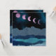 Ce magnifique paysage abstrait dépeint une scène montagneuse nocturne avec une lune rose audacieuse montrée par phases passant au-dessus du ciel. Le design utilise des couleurs bleu, cyan, rose et gris.