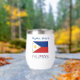 Le design sur la tondeuse à vin thermique présente le drapeau philippin avec le mot PHILIPPINES sous le drapeau, dans les mêmes couleurs. Ci-dessus, en lettres bleues, un endroit pour votre nom pour la personnalisation ou pour créer un cadeau spécial. Un cadeau amusant pour le ménage pour vos Philippins préférés. Les groupes de voyageurs apprécieront. Cool à utiliser lors d'une réunion de famille philippine. Maman ou papa pourrait l'apprécier pour la fête des mères ou la Fête des pères.