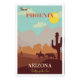 Affiche de voyage moderne de style vintage rétro pour Pheonix, Arizona, États-Unis avec cowboy équitation cheval et ville skyline vectoriel illustration numérique dans les tons bleu silhouette