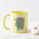 The coffee mug design saying "Phoenix" and "The Valley" is colored yellow. It makes it ideal for either coffee or tea in the mornings. It is microwave and dishwasher safe.