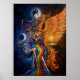 A symbolic spiritual art poster featuring a phoenix rising above a lotus — representing balance, renewal, and inner strength.