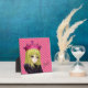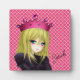 Fun stand up plaque art fait dans un arrière - plan diamant rose et vert motif, avec des graphiques d'une fille anime blond, avec couronne rose sur. Personnalisez le nom pour une idée de cadeau pour elle.