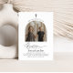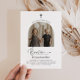 Une invitation au baptême minimaliste et moderne avec une photo voûtée et le mot "Baptême" dans une police de style calligraphie. Veuillez noter que vous ne pouvez pas modifier le mot "Baptême" mais vous pouvez modifier tous les autres textes dans cette conception. Vous pouvez modifier sa couleur ou la supprimer et la remplacer par une nouvelle zone de texte si vous le souhaitez.