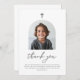 Une belle façon d'express de la gratitude pour les êtres chers qui viennent à la première sainte communion de votre enfant, ce carte de remerciements moderne et élégant présente votre photo personnalisée en forme d'arc moderne, "Merci" dans une police de script en dessous. Vous pouvez également personnaliser avec votre propre message pour créer un nom qui reflète vraiment cette étape spéciale. Parfait pour partager votre appréciation avec votre famille et vos amis !