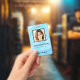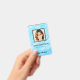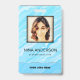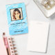 Photoshop moderne avec photo sur un arrière - plan bleu et logo. Des informations supplémentaires peuvent être ajoutées à l'arrière de ce badge d'identification d'entreprise